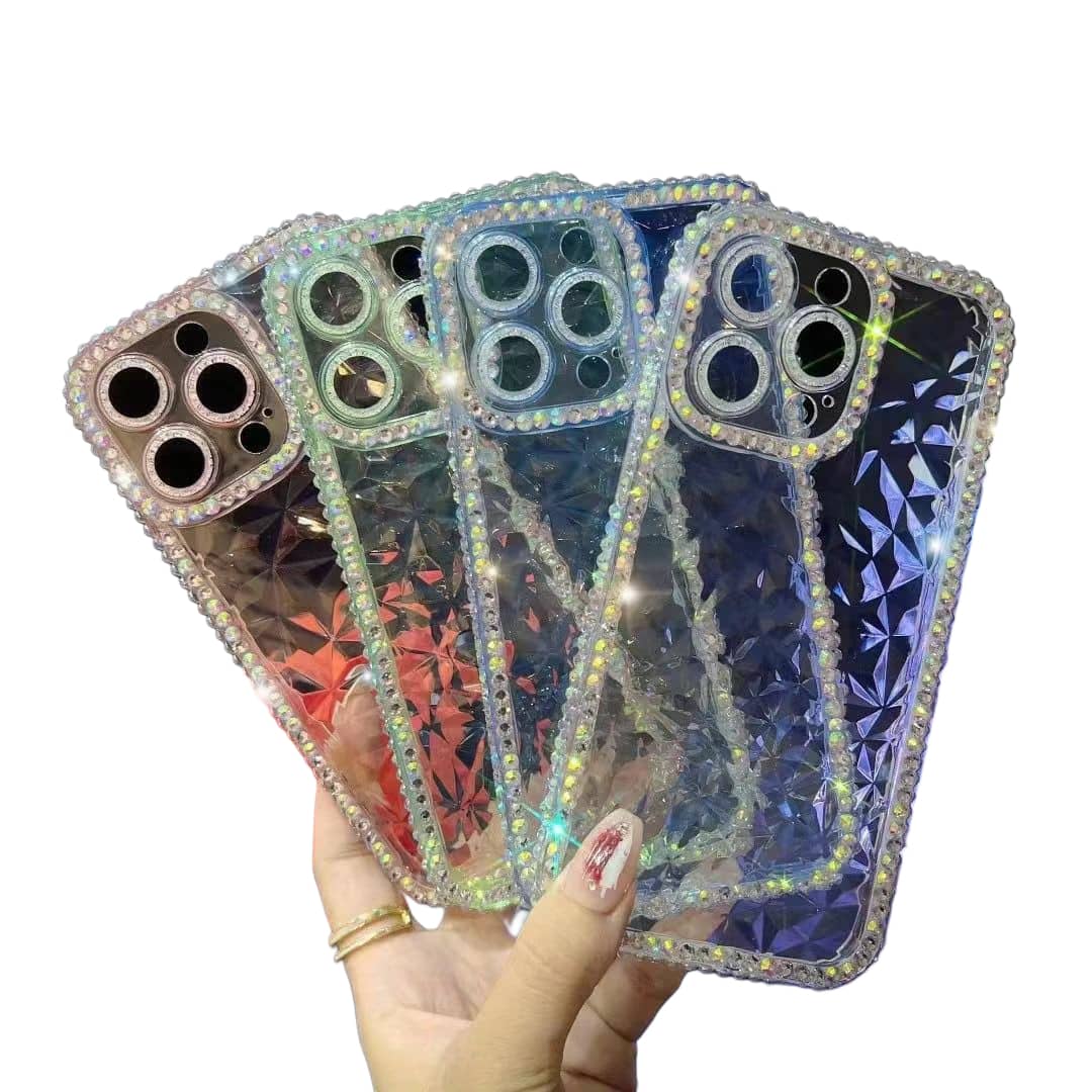 درخشش قاب موبایل شفاف طرح الماس از نگین‌های کریستالی ظریف در اطراف فریم آن ناشی می‌شود. این نگین‌ها به‌ صورت دقیق و منظم روی لبه قاب کار شده‌اند و با انعکاس نور، جلوه‌ای چشم‌نواز ایجاد می‌کنند. طراحی شفاف قاب نیز اجازه می‌دهد رنگ اصلی گوشی دیده شود و ترکیب درخشندگی نگین‌ها با بدنه‌ی گوشی جلوه‌ای مدرن و لاکچری بسازد.